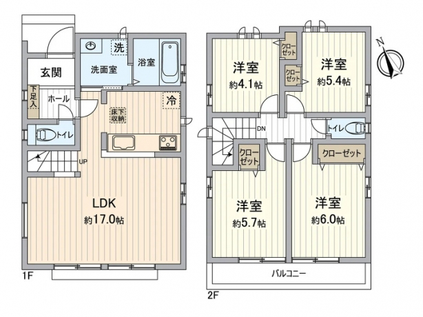 ■4LDK■カウンターキッチン■南向き■全居室フローリング■リビング17帖■日当たり通風良好■トイレ2箇所■駐車スペース2台